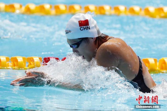资料图:2019年4月27日晚,中国游泳选手傅园慧在2019年FINA冠军游泳系列赛(广州站)上夺得女子100米仰泳冠军。中新社记者 陈骥旻 摄