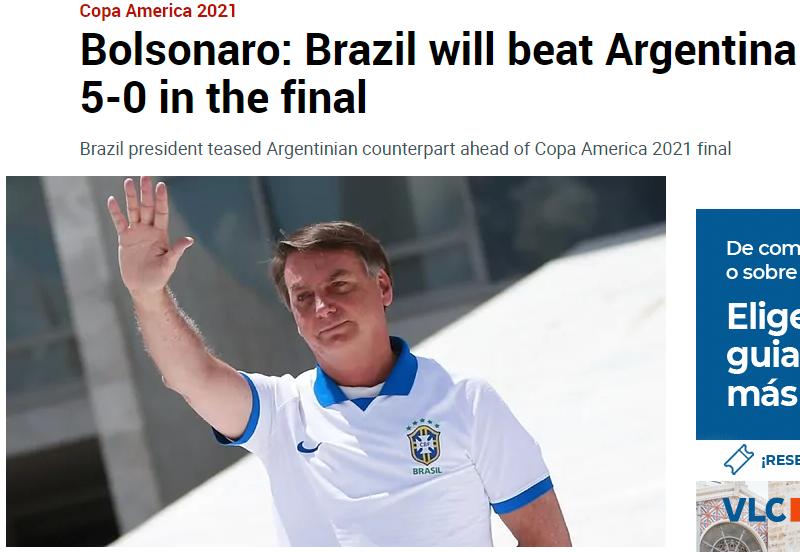 最近南美几个国家的领袖进行了一次视频会议,博索内罗也谈到了接下来的美洲杯决赛,他说道:“巴西和阿根廷只有一种竞争,那就是几天后的美洲杯决赛。巴西将会5-0击败阿根廷。”