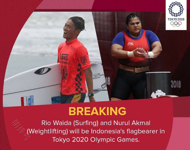 日前,印尼奥委会公布了东京奥运会开幕式上的旗手人选,冲浪选手瓦伊达和举重选手阿克马尔获得殊荣。