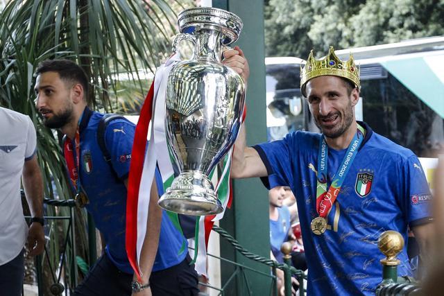 7月12日下午,意大利国家队凯旋而归,将冠军奖杯带回罗马