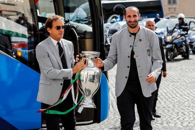 意大利全队目前已返回国内,意大利总统马塔雷拉也与球队一同欢庆胜利。主帅曼奇尼在进行胜利致辞时,向马塔雷拉和意大利球迷表达了感谢。