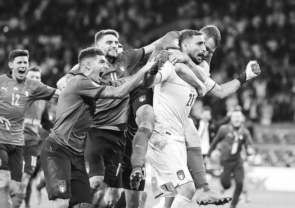 欧洲荣耀属于蓝色。北京时间7月12日凌晨结束的2020欧洲杯决赛中,意大利队与英格兰队在伦敦温布利球场展开冠军之战。意大利队在开场失球的局面下,下半场顽强扳平。并在点球大战中3比2胜出,从而以总比分4比3夺得欧洲杯冠军,时隔53年之后,第二次捧起象征着欧洲足球最高荣誉的德劳内杯。