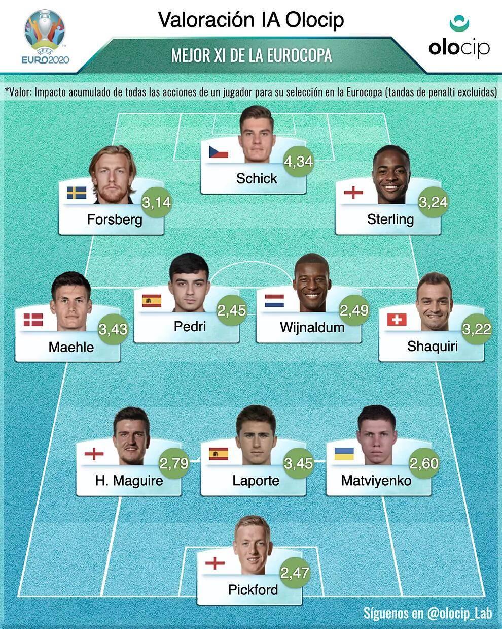 在最佳球员的选择上,AI给希克打出了最高分。希克在本届欧洲杯中打进5球,他得到了4.34分。佩德里被选为了最佳年轻球员,他的得分为2.45分。