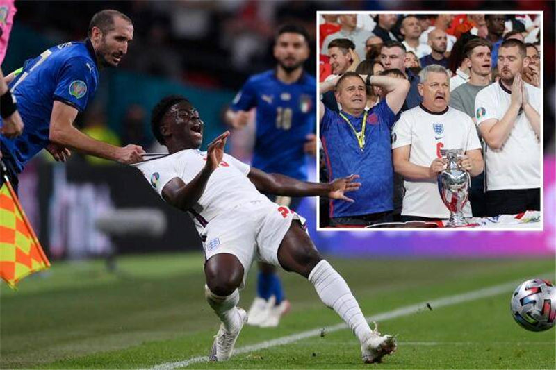 在决赛中,基耶利尼因为拉拽萨卡而被黄牌警告。部分英格兰球迷认为,基耶利尼应该被直接红牌罚下。但《太阳报》明确指出,萨卡并没有得到足够明显的破门机会,基耶利尼的拉人犯规不应该是红牌级别的。
