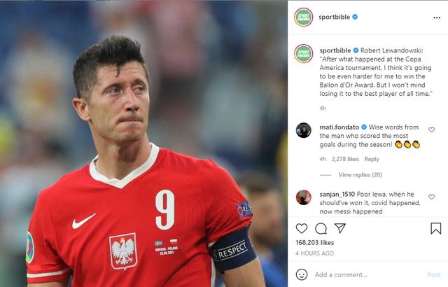 莱万在采访中说道:“在梅西赢得美洲杯后,我认为我想要赢得今年金球奖就变得更难了,但我不会介意输给这位历史最佳球员!”