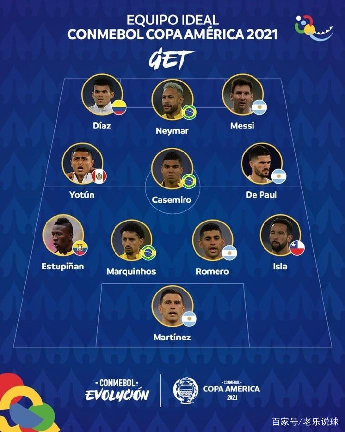 美洲杯最佳阵容:门将:马丁内斯(阿根廷)后卫:埃斯图皮尼安(厄瓜多尔)、马尔基尼奥斯(巴西)、罗梅罗(阿根廷)、伊斯拉(智利)中场:约顿(秘鲁)、卡塞米罗(巴西)、德保罗(阿根廷)前锋:迪亚兹(哥伦比亚)、内马尔(巴西)、梅西(阿根廷)