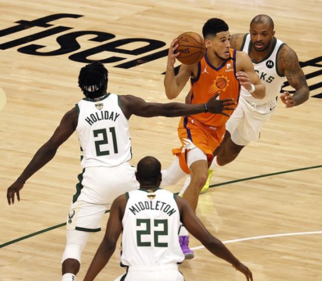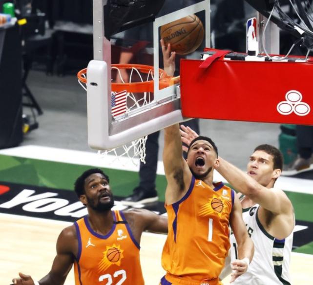上场表现不佳的布克,开局就命中一记跳投。随后米德尔顿上篮打成,霍乐迪喂饼大洛,布克回敬抛投,双方开局战成4-4。太阳轰出一波6-0打停雄鹿,布登顺势换下了字母哥。