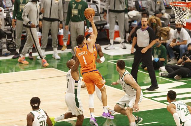 随后布克补篮再中,米德尔顿命中止血三分,布克两罚全中,布里奇斯抛投打中,字母哥篮下强打破冰,布克勾手再中,雄鹿9-18落后。