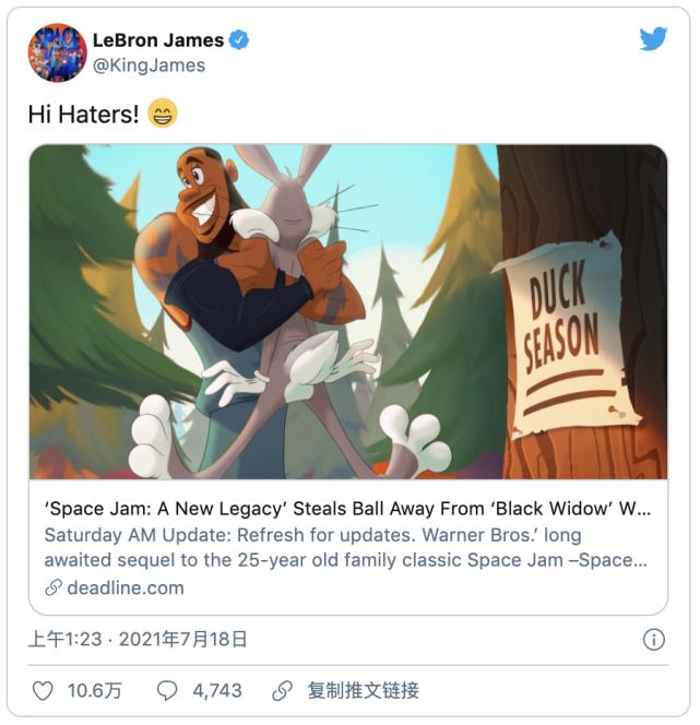 而勒布朗-詹姆斯甚至亲自在社交媒体上庆祝自己这部电影所取得的成绩: