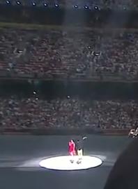 但这都不影响当晚现场表演的亮点。这些画面,是我们在电视里看不到的。比如演出开始时有一个长时间的暖场表演,邀请了当时众多当红歌手,表演了长达两个小时的暖场节目。