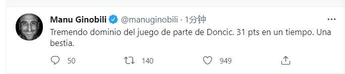 连阿根廷“黄金一代”名宿吉诺比利都在社交网络上称赞道:“东契奇主宰比赛的能力太强了,半场就得到31分,真是怪兽。”