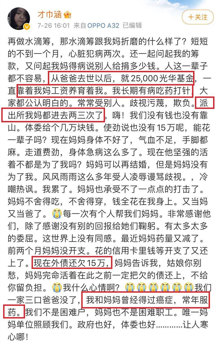 之后妻女的生活也陷入困顿,痼疾缠身,仅靠微薄收入度日,欠着15万的外债……被质疑、遭辱骂,背负着沉重的担子一步步前行。