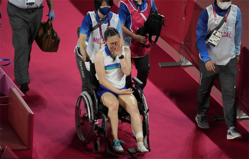 2021年东京奥运会羽毛球比赛继续在东京武藏野之森综合体育广场进行。刚刚结束的混双半决赛,下半区的国羽组合王懿律/黄东萍,以21-23、21-15、21-14逆转战胜东道主日本组合渡边勇大/东野有纱率先晋级决赛。他们决赛的对手,在国羽的郑思维/黄雅琼与中国香港组合邓俊文/谢影雪之间产生。上午同时进行的一场女单16强战,国羽球员何冰娇的对手美国的张蓓雯在第二局开局阶段意外受伤退赛,何冰娇就此进入到本次比赛的八强。