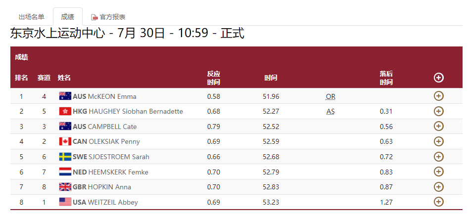 北京时间7月30日,东京奥运会进入第七个比赛日。游泳女子100米自由泳决赛,澳大利亚选手麦基翁以51秒96的成绩夺金,中国香港名将何诗蓓以52秒27的成绩摘银并且打破亚洲纪录!这也是何诗蓓在本届奥运会收获的第二枚银牌。