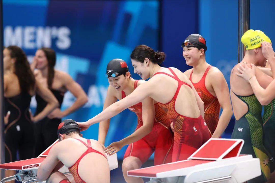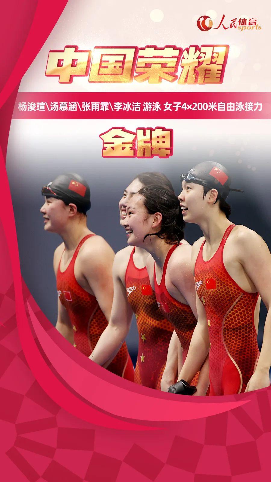 杨浚瑄/汤慕涵/张雨霏/李冰洁在东京奥运会女子4×200米自由泳接力决赛中获得金
