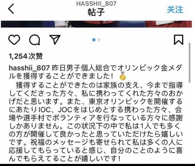 在东京奥运会男子体操全能决赛中,中国选手肖若腾在男子全能决赛绝大部分时间里都处于领先地位,但最后时刻被19岁的东道主新秀桥本大辉超越,桥本大辉夺得了本届奥运会的男子体操全能的冠军。赛后桥本大辉的高得分遭到了不少质疑,近日桥本大辉在个人社交媒体上发文为自己的表演遭到质疑而道歉。