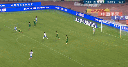 比赛第34分钟,马格诺在左边禁区线持球,周通跟进接应,马格诺选择回传,周通得球之后直接横向摆脱一步完成了劲射破门,天津津门虎1-0领先。