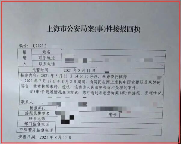8月11日,朱婷在个人媒体上晒出了报警回执,并且配文表示:已公正,固定证据,已报案,请求追究刑事责任,下一站,人民法院。朱婷的发文也迅速引发了很多球迷热议和关注。