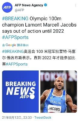 据法新社8月12日透露,东京奥运会百米冠军雅各布斯表示,今年他将不会再参加任何比赛直至2022年。