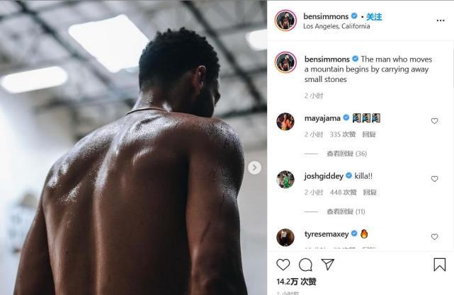 然而,尽管外界有很多关于西蒙斯的不利报道,但西蒙斯本人似乎对这些流言并不在意。在今天早些时候,西蒙斯更新自己的社交媒体,他晒出了自己在洛杉矶的训练照,并配上了这样一段话:“若要想搬动一座大山,就必须从搬动小石头做起。”
