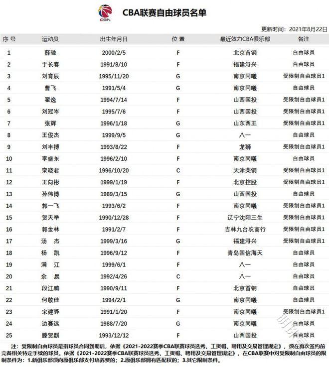新增刘育辰、于长春和薛驰三名球员,总人数累计25人。
