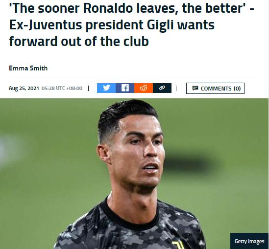 “C罗是一名伟大的球员,但是我必须诚实地表达我的观点,他离开得越早,对他和尤文图斯越好。”