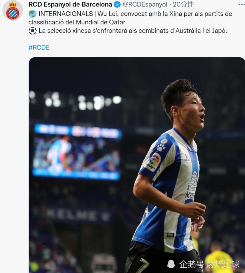 北京时间8月25日晚,西班牙人俱乐部官方宣布,武磊将在本周四(8月26日)从西班牙前往卡塔尔多哈,中国前锋将在那里与国足汇合并参加集训。9月2日和9月7日,国足将在多哈分别对阵澳大利亚和日本队。