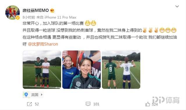 唐佳丽写道:“非常开心,加入球队的第一场比赛,并且取得一粒进球 没想到我的热刺首球,竟然在我二妹身上得到的。在这种场合相遇,更显得有些激动,并且也祝贺我二妹取得一个助攻。我们都继续加油呀。”