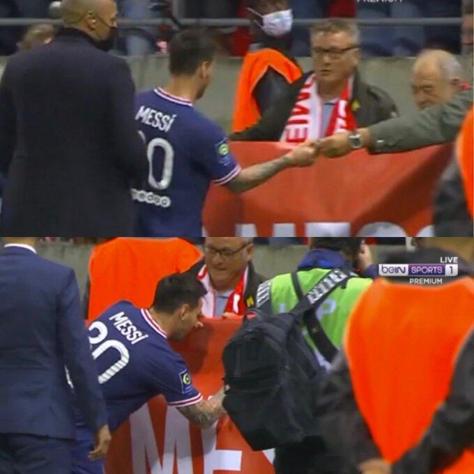 当梅西走出球场的时候,一位兰斯老球迷请求梅西在球衣上签名。值得一提的是,3周之前,兰斯仅仅卖出了3000张门票,而此役则卖出了多达21000张门票。