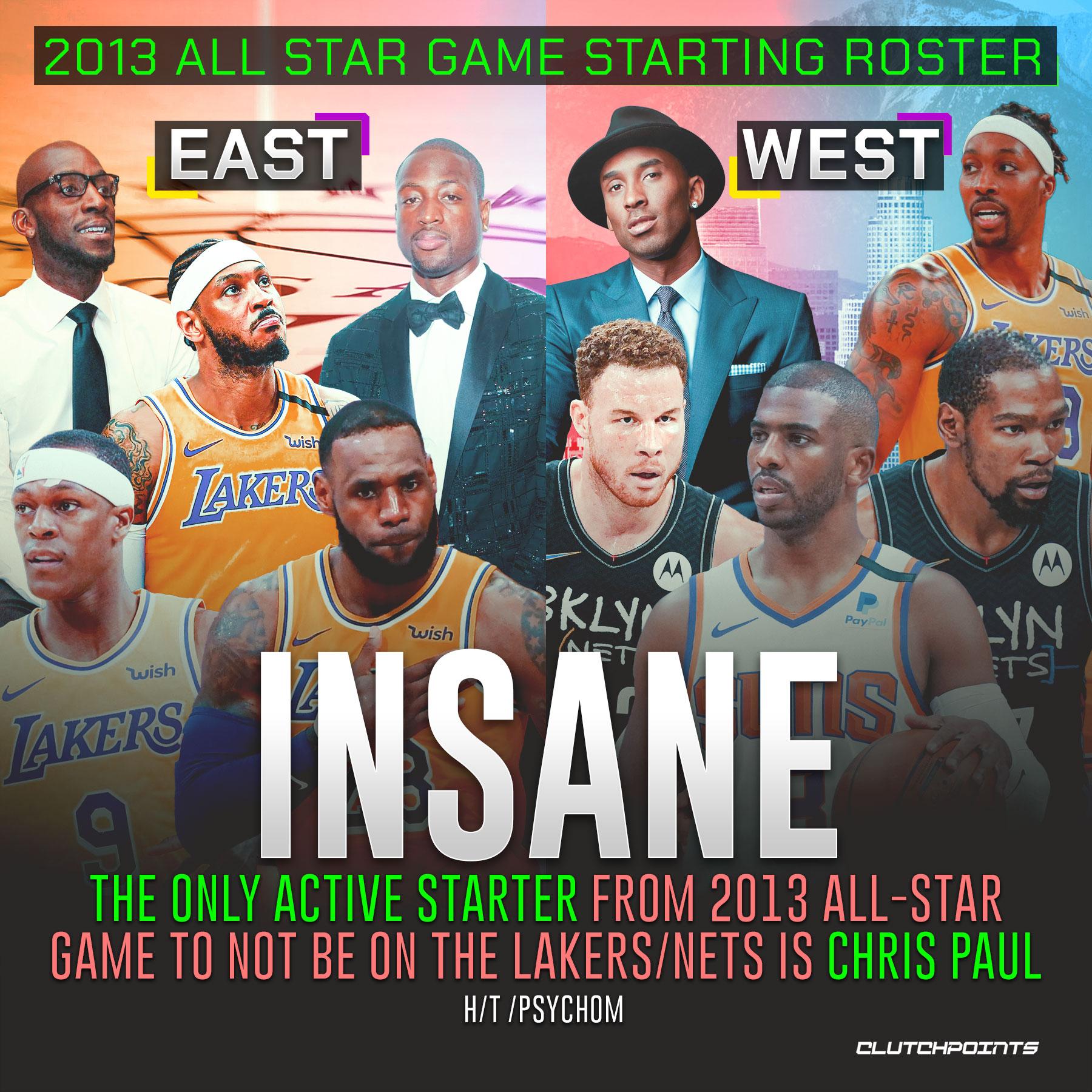 北京时间8月31日,随着朗多确定加盟湖人,美媒晒出2013年全明星首发的现状,詹姆斯领衔4人效力湖人,杜兰特领衔2人效力篮网,3大名宿退役,美媒直言:只有保罗选择了一条不同的道路。