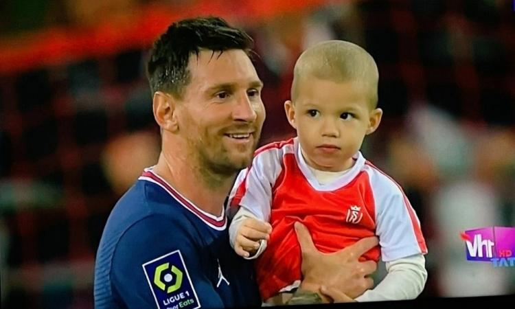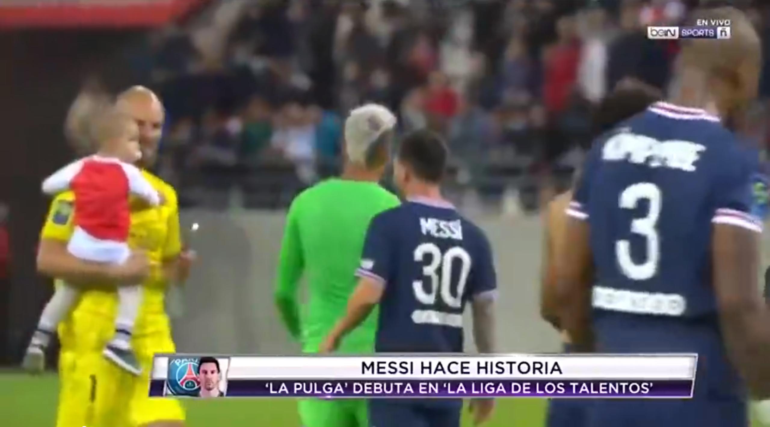8月30日消息,北京时间今天凌晨法甲第4轮,巴黎圣日耳曼客场2-0战胜兰斯,梅西替补登场迎来大巴黎首秀。有趣的是,赛后,兰斯门将拉伊科维奇抱着儿子来找梅西合影,而且是让梅西抱着自己儿子合影!