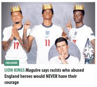 欧洲杯决赛,英格兰点球大战输给了意大利,三狮军团的拉什福德、桑乔以及萨卡罚丢了点球。赛后,三人受到了种族主义歧视。英格兰中卫马奎尔在接受采访时表示,种族歧视者是不