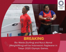 日前,印尼奥委会公布了东京奥运会开幕式上的旗手人选,冲浪选手瓦伊达和举重选手阿克马尔获得殊荣。 21岁的瓦伊达出生在日本,爸爸是印尼人,妈妈是日本人,日本名字和井田理