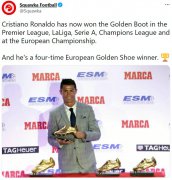 据Squawka统计,C罗职业生涯已经获得五项不同赛事的金靴奖,并4次被评为欧洲最佳射手。 今天凌晨,欧洲杯落下帷幕,C罗以5球1助的数据当选本届欧洲杯最佳射手。 这位葡萄牙巨星职