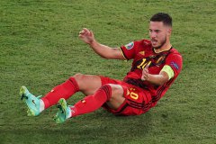 比利时两大王牌阿扎尔和德布劳内仍未参加球队合练,只能在室内由理疗师的陪同下进行单独的训练,因而出战欧洲杯1/4决赛对阵意大利的比赛成疑。 2020欧洲杯1/8决赛,比利时凭借着