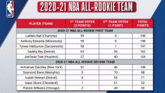 北京时间6月18日,NBA官方公布了本赛季入选最佳新秀阵容名单,在最佳新秀第一阵容当中,状元爱德华兹、探花鲍尔、国王队哈里伯顿、活塞队的贝和火箭队泰特成功入选。而在第二阵