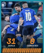 意大利队近10场全胜,打进31球,0丢球 如今的意大利队,再也不是1-0主义的信奉者了。 17日凌晨,在欧洲杯小组赛A组的第二轮比赛中,意大利3比0完胜瑞士,成为本届欧洲杯中第一支晋