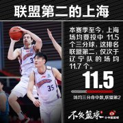 北京时间2月5日,CBA常规赛第39轮,上海109-101战胜青岛取得两连胜。本场比赛,上海队三分球33投14中。 本赛季至今,上海队场均能够命中11.5记三分,联盟第二多,仅次于辽宁的11.7记。