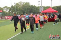 30日上午10时许,在淅淅沥沥的冬雨中,江岸区第七届全民健身运动会暨2019年江岸区第四届长江金岸杯足球赛在汉口江滩三期足球场开幕。 (图为双方运动员入场 通讯员龚源 摄) 今年