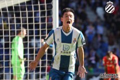中新网客户端北京11月25日电(张一凡) 北京时间24日晚,西班牙人在西甲第14轮中1:1战平赫塔菲。中国球员武磊在上半场为球队扳平比分,收获赛季个人西甲第一球。在低迷的国足身处寒