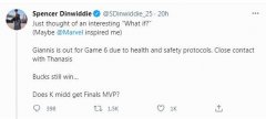 在7月18日,雄鹿与太阳的赛后,扬尼斯的哥哥萨纳西斯因违法安全协议被禁赛,NBA球员斯潘塞-丁威迪在推特上写道:想出一个有趣的如果,扬尼斯因为安全协议缺席G6,因为扬尼斯与自