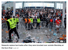 北京时间7月16日,据《太阳报》报道,一名英格兰女球迷表示,在2020欧洲杯决赛前,自己在温布利遭到了暴徒的性侵犯:这名20多岁的女学生表示,自己被男人摸了,并且牛仔裤也因此