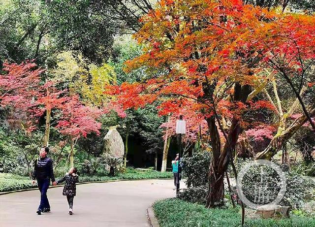 市民们走进公园,感受迷人秋色。