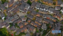 这是婺源县江湾镇篁岭村的晒秋景象(11月7日无人机拍摄)。新华社记者 胡晨欢摄 游客在婺源县江湾镇篁岭村欣赏风景(11月7日摄)。新华社记者 胡晨欢摄