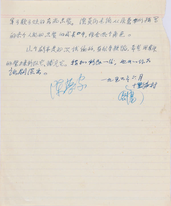 陈梦家豫剧剧本《红日》手稿正文结束页