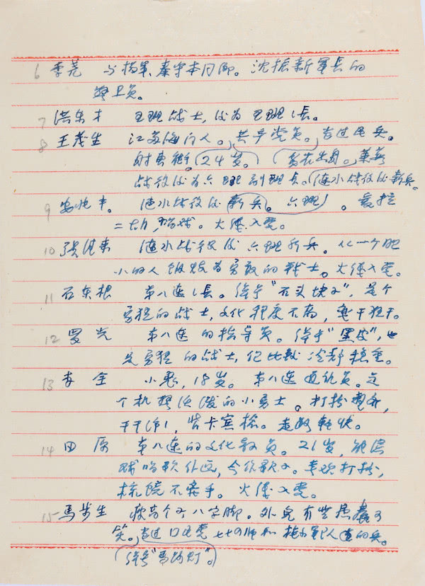 陈梦家豫剧剧本《红日》手稿中的人物表