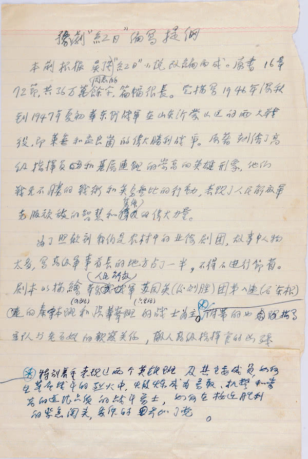 陈梦家豫剧剧本《红日》手稿(提纲部分)