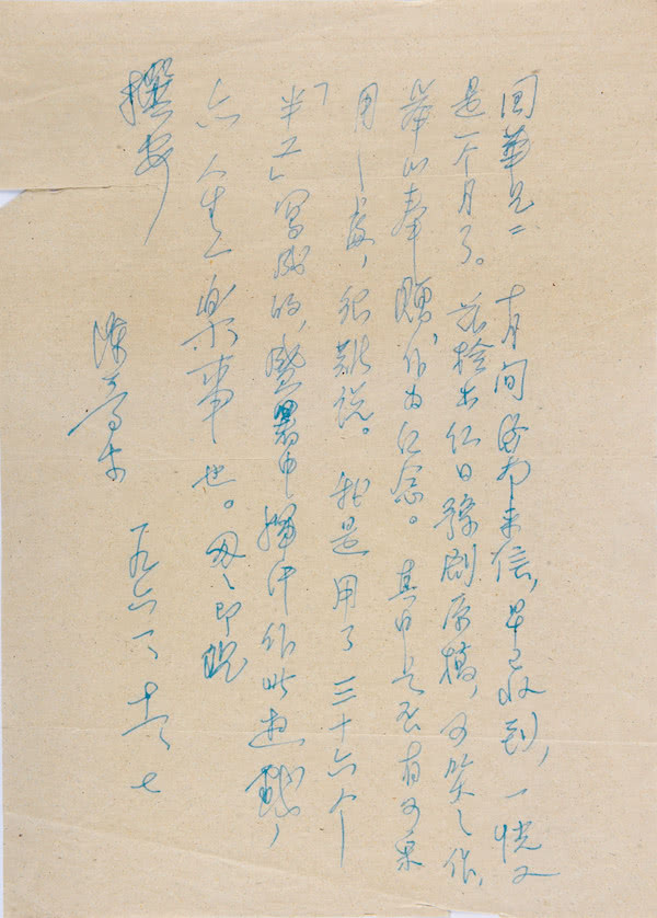 陈梦家豫剧剧本《红日》手稿中附的一封陈梦家的信