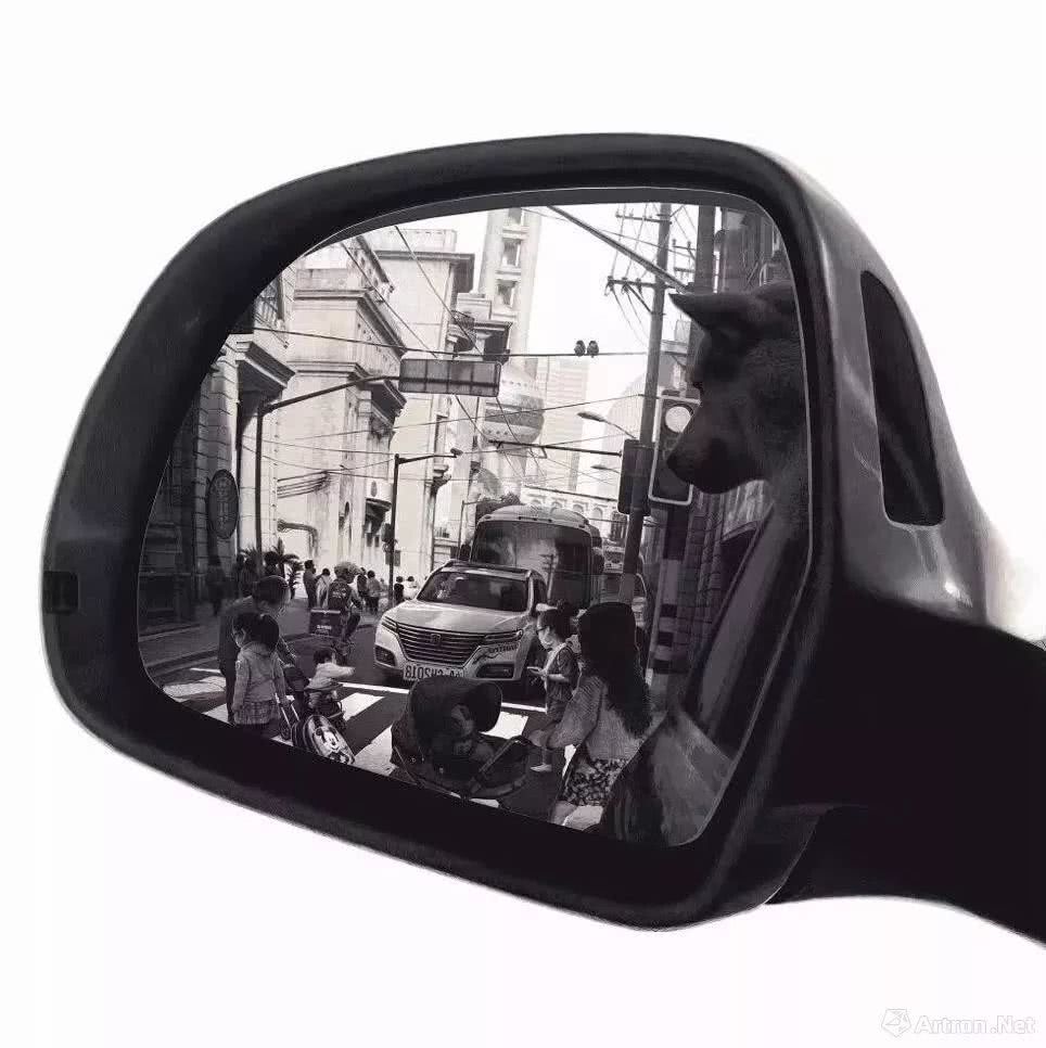今年廖扬的《上海街头》获得了今年“刘海粟美术奖”,画面为汽车反光镜中的上海标志性地段,上海民众生活的常见现象及有趣转变,这题材也能看到廖扬一直坚持的初心。