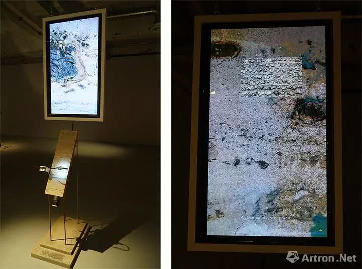 另外,郭城在所挖的坑壁上切下4块等大的块面,组成8块土壤标,其中4块抹去人类痕迹。现场还连着一套连接网络的摄像装置,它不断地在土壤标本上进行移动,然后扫描、拍摄照片,上传到线上的一个计算机视觉算法,识别所拍摄的局部会像什么,最后会返回一张类似的图片。郭城想通过这样一个非常模糊、不精确的方式,让土壤的历史和网络上的历史做一个关联。